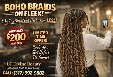 At LC Divine Beauty, we believe beauty is powerful β inside and out. Our salon offers expert hair care, styling, and beauty services in a warm, elegant space. Beyond services, we carry a curated selection of high-quality beauty supplies and essentials youβll love.